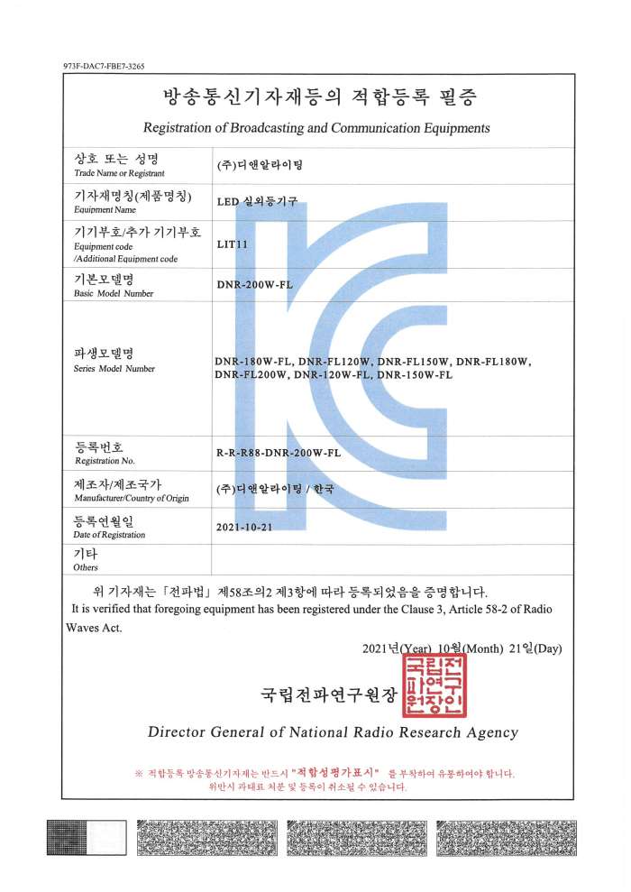 (주)디앤알라이팅의 인증서 현황 입니다.